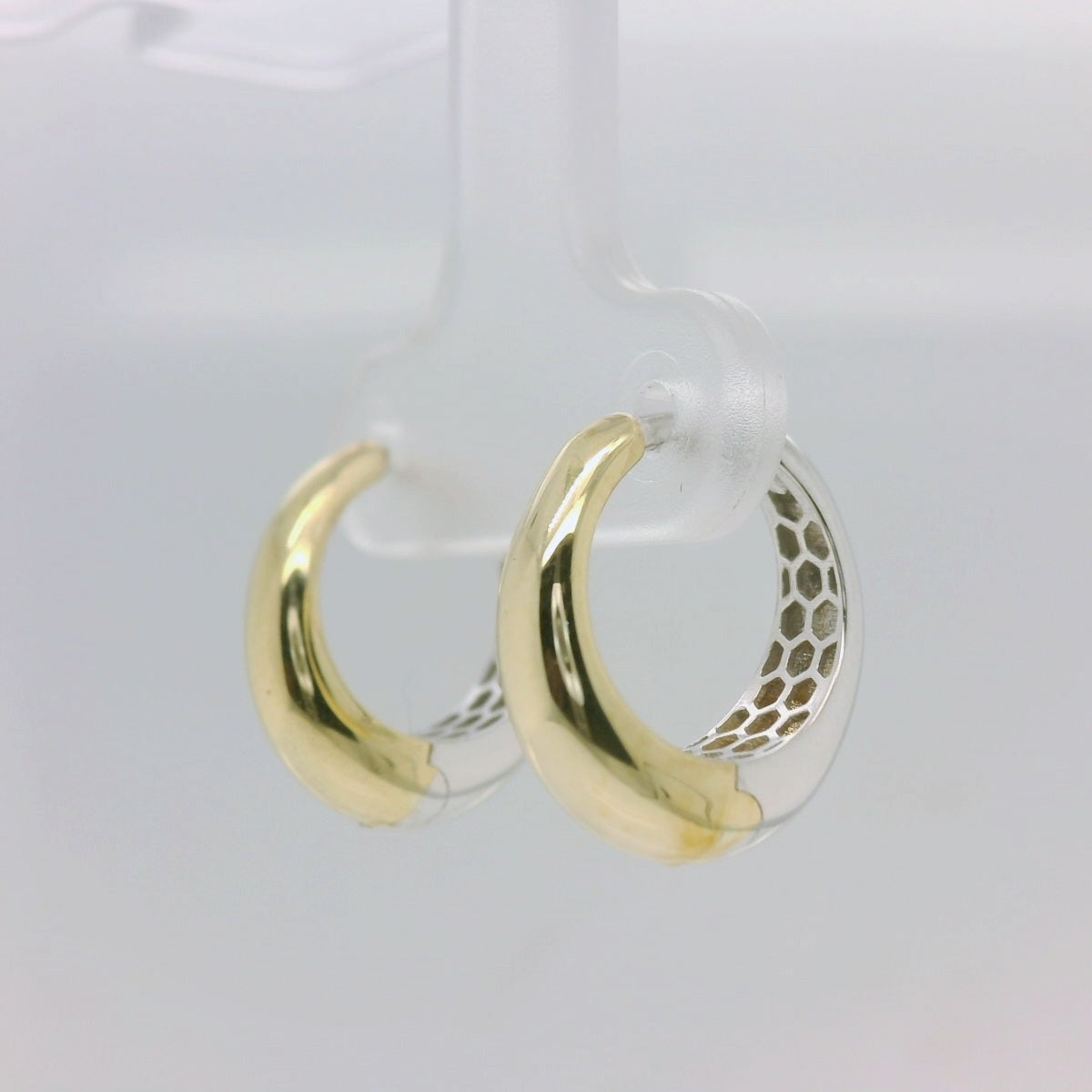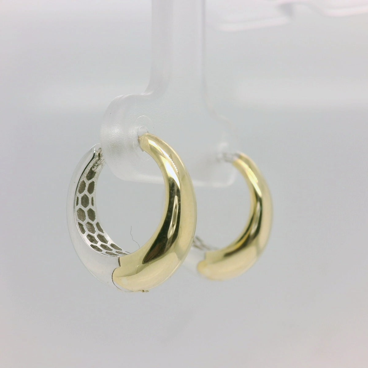 9ct Yellow & White Gold Tapered Round Huggie Earrings