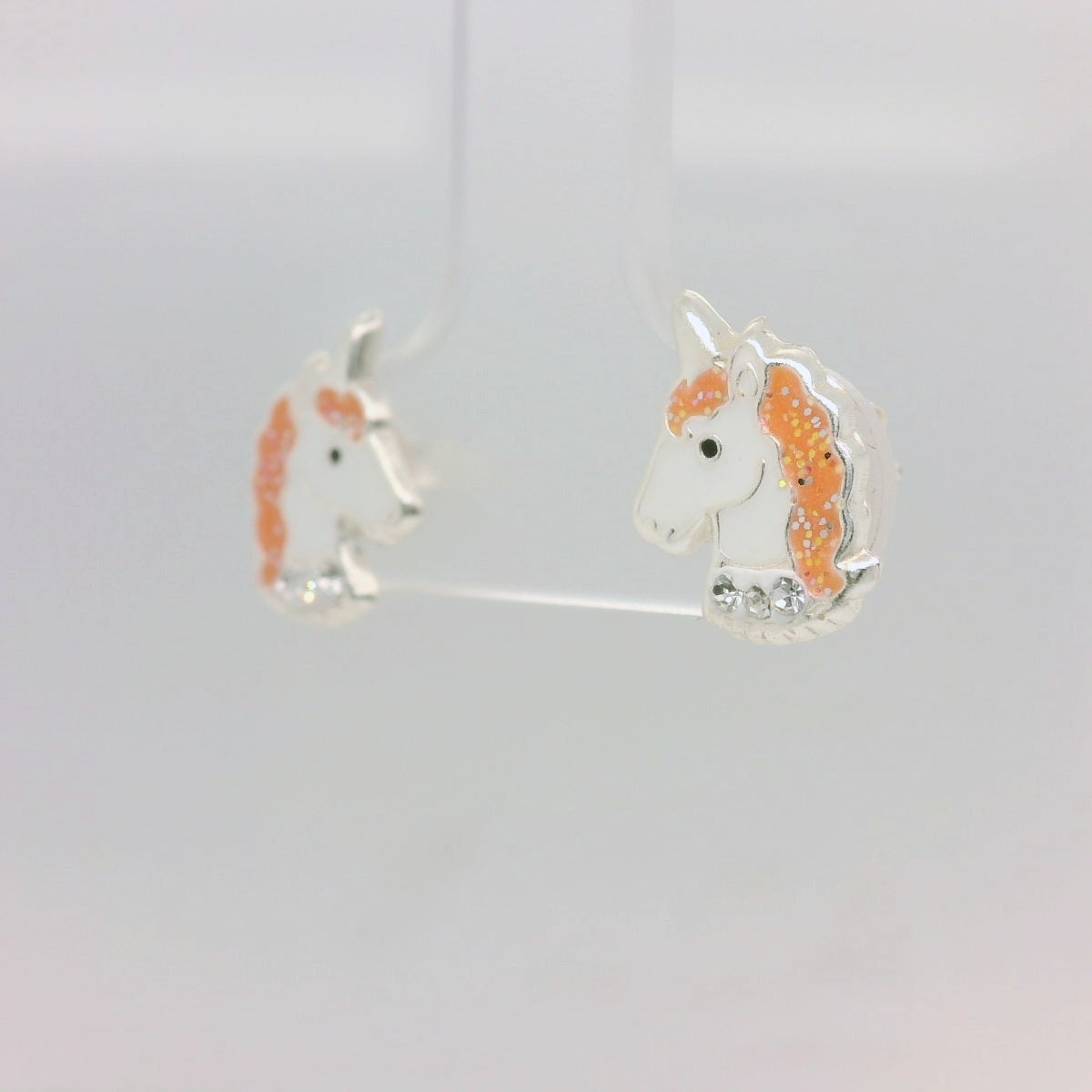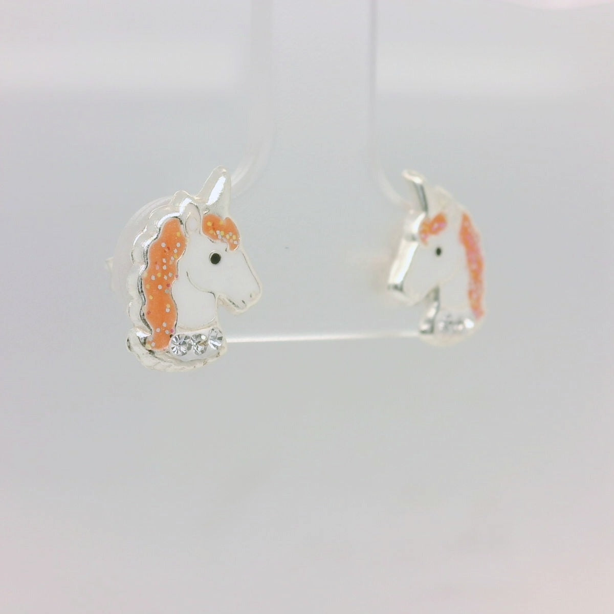 These 8mm sterling silver unicorn stud earrings are adorned with colourful enamel and set with sparkling crystals, capturing the whimsical charm of every child's favourite mythical creature. A perfect gift for little dreamers and unicorn lovers alike.