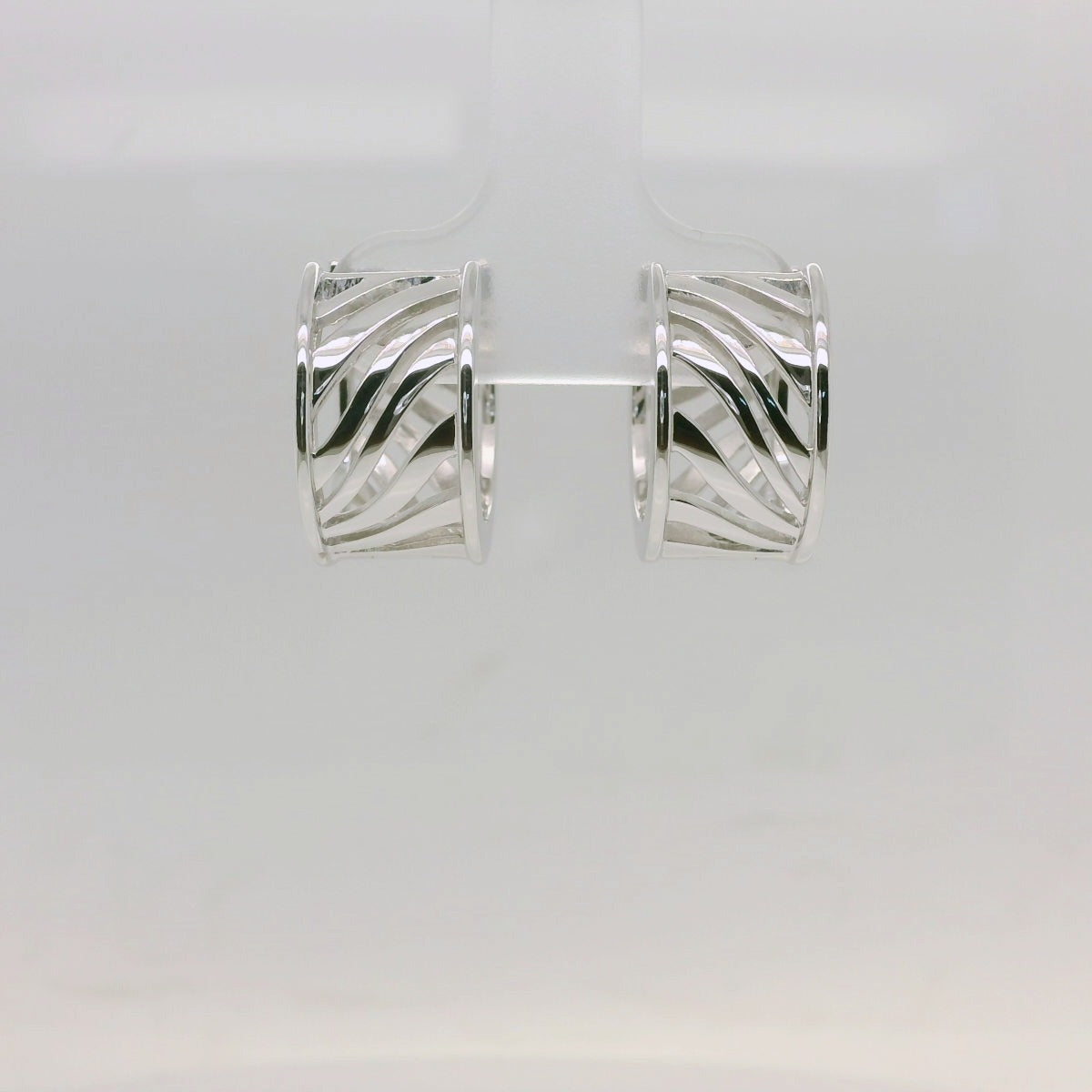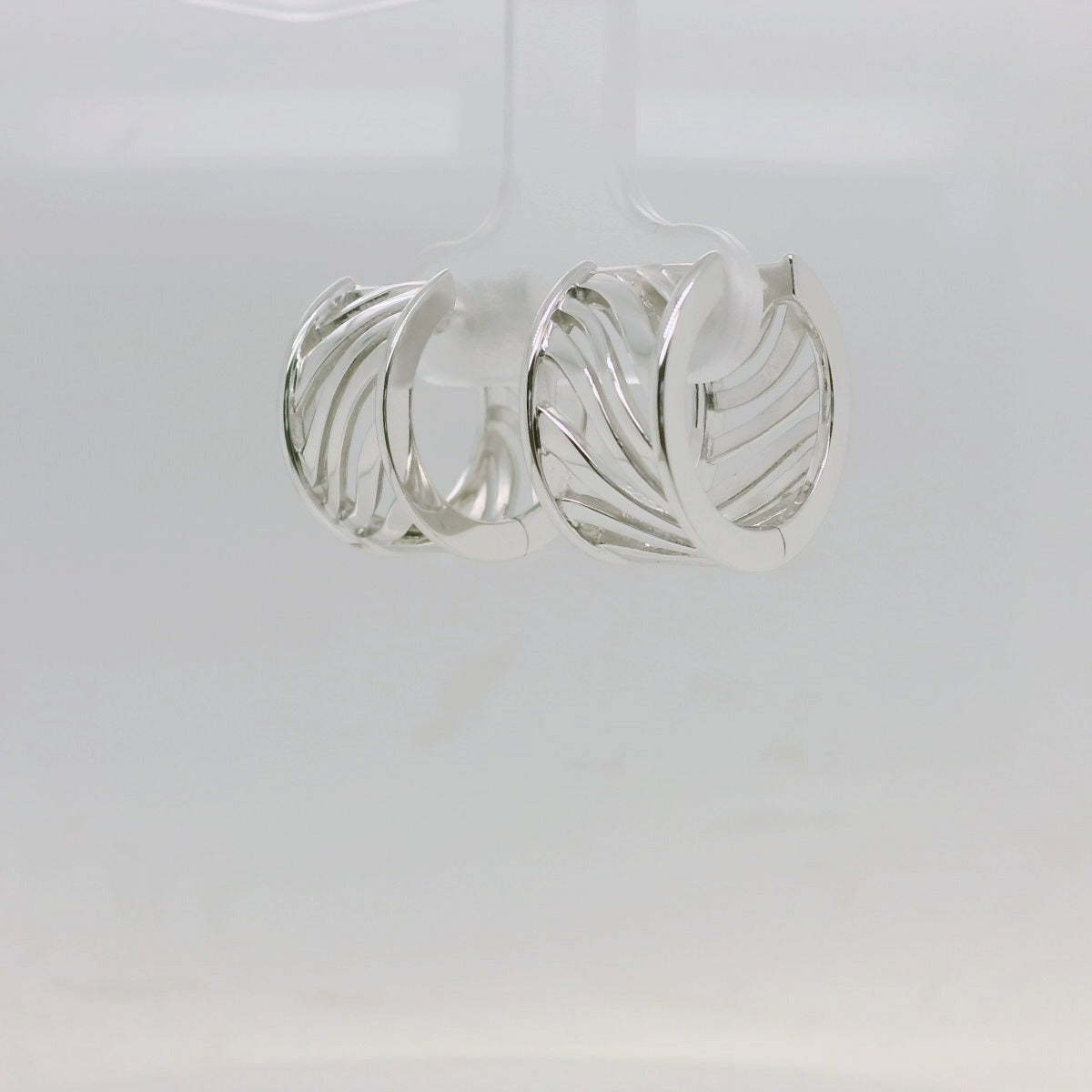 Make waves with these elegant Sterling Silver Rhodium Plated Huggie Earrings, designed with a modern cut-out wave pattern. Crafted in sleek sterling silver and finished with a premium rhodium plating for lasting shine and tarnish resistance, these huggies offer both style and substance. The fluid, wave-inspired design adds a contemporary twist, making them a versatile choice for everyday wear or special occasions. Lightweight, secure, and effortlessly chic—these earrings are the perfect blend of form and function.