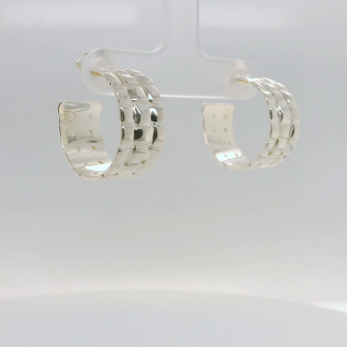 NAJO - Sterling Silver wide hoop with woven pattern on a stud fitting