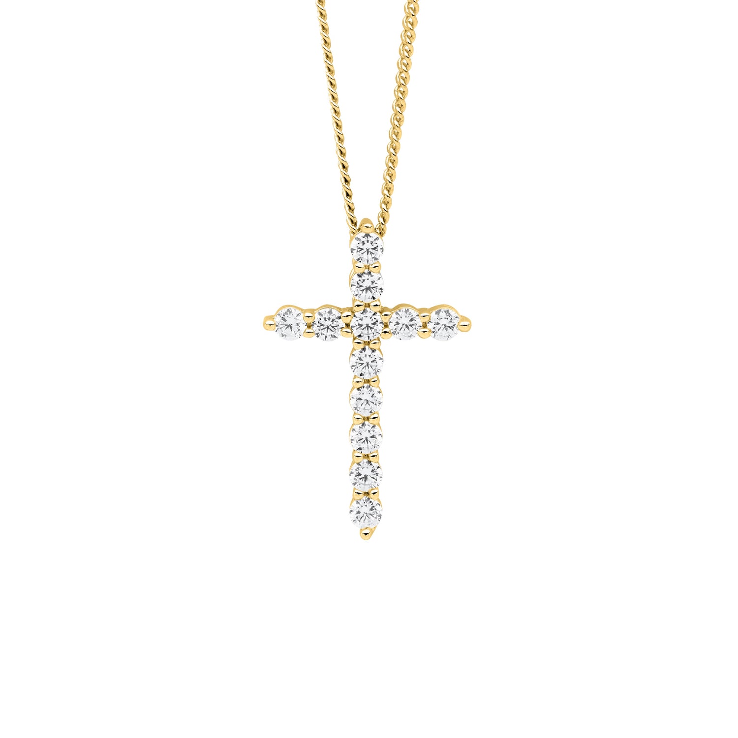 Ellani Collections - Sterling Silver yellow gold plated cross pendant, set with white cubic zirconia's
