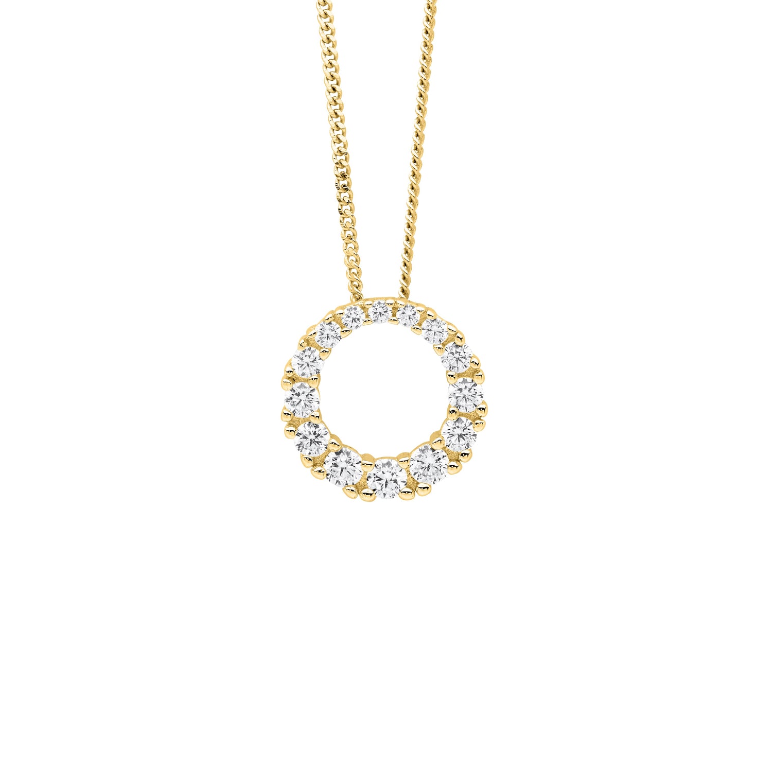 Ellani Collections - Sterling Silver yellow gold plated open circle pendant, set with white graduated cubic zirconias